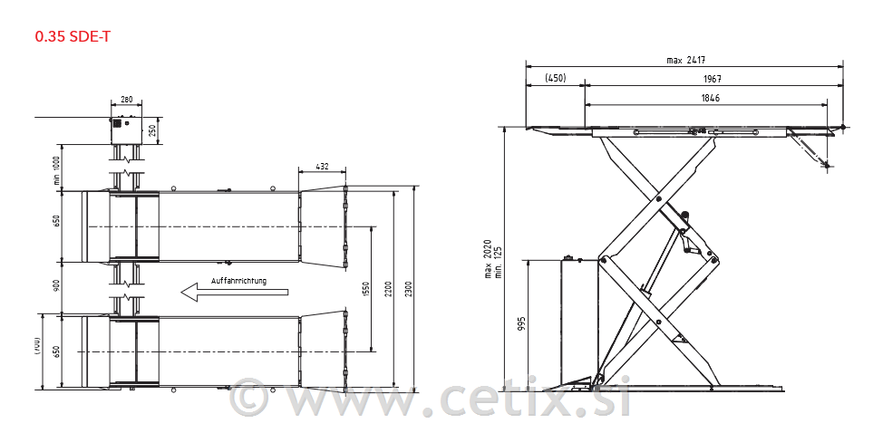 Pokriva vse. Z njim lahko dvignete dolga limuzinska vozila in podaljšane različice (npr. Audi A8L, Mercedes S-klasa, dolgi kombiji). Consul 0.35 SDE-T je vrhunsko dvojno škarjasto dvigalo, namenjeno vzdrževanju in popravilom osebnih vozil ter lažjih dostavnih vozil. Odlikuje ga izjemno nizka višina (le 125 mm), kar omogoča enostaven uvoz tudi za vozila z nizkim podvozjem. Dvigalo je zasnovano za dolgo življenjsko dobo in visoko stopnjo varnosti, primerno pa je tako za nadzemno montažo kot za vgradnjo v tla.