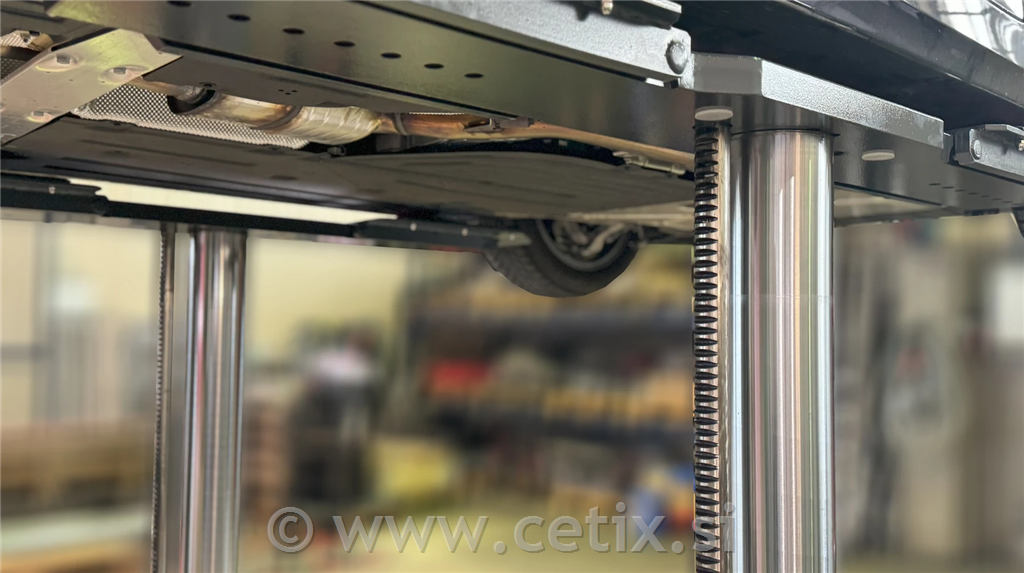 • TR (Toothed Rack): Ta model uporablja sistem zobate letve in kardanske gredi za sinhronizacijo, kar zagotavlja maksimalno stabilnost in enakomeren dvig.