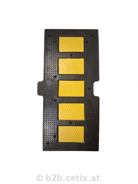 Cestni ležeči policaji model RH-1100 in RH-T1100 iz črne gume z rumenimi odsevnimi črtami so idealni za urejanje prometa na cestah, parkiriščih, v garažah, stanovanjskih objektih in tovarnah. Opremljeni so z nedrsečo površino in odsevnimi trakovi za maksimalno vidnost in varnost. Modularna zasnova s sredinskimi in zaključnimi elementi omogoča lažji prehod kolesarjev in pešcev. Enostavna namestitev z mehanskimi ali kemičnimi pritrdilnimi sidri (niso priložena). Največja dovoljena hitrost: 30 km/h.