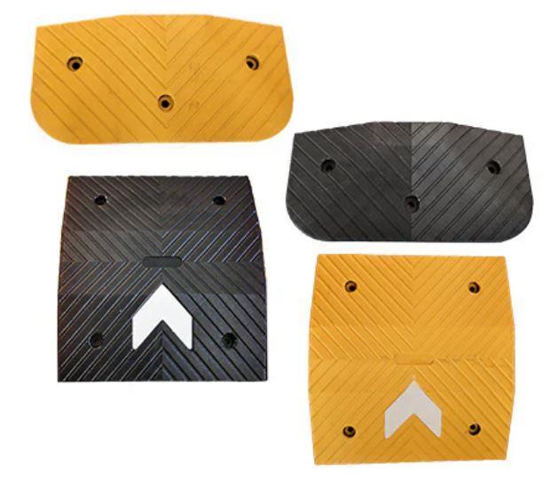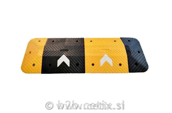 Model DH-SP cestne hitrostne ovire iz črno-rumene gume z belimi odsevnimi puščicami so idealne za zasebna zemljišča, parkirišča in stanovanjska območja. Na voljo so kot sredinski in končni moduli, zmanjšujejo hitrost do 30 km/h ter tako zagotavljajo večjo varnost. Enostavna namestitev z vijaki za pritrditev (niso priloženi), odporen material za dolgo življenjsko dobo in odlična vidljivost ponoči.