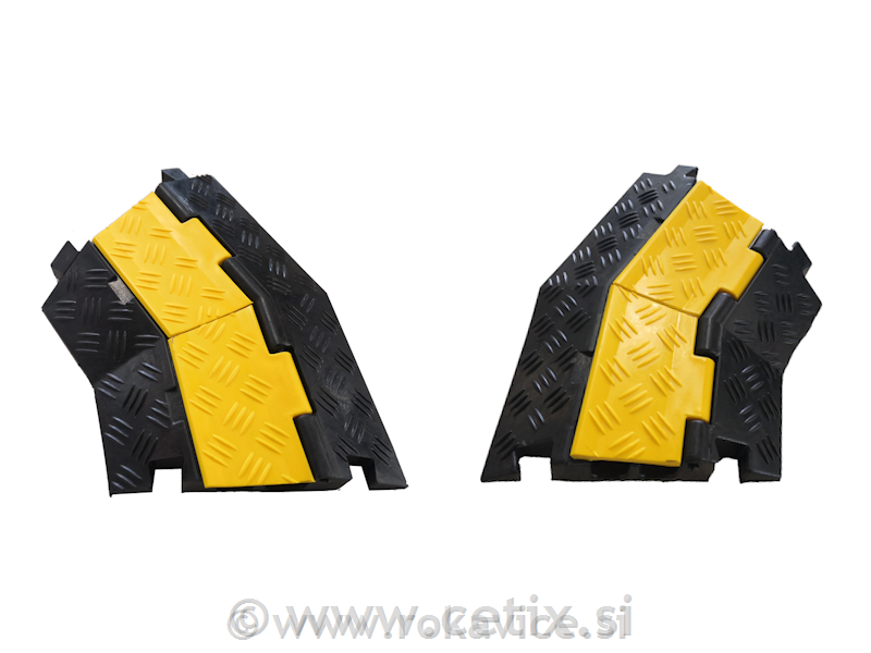 Ukrivljena kanala za kable DH-CP-S2L in DH-CP-S2R so 45° povozni kotni moduli, namenjeni preusmerjanju kabelskih linij na območjih z veliko prometa. Izdelani so iz vulkanizirane gume z rumeno PVC prevleko ter imajo dva kanala velikosti 3,2 × 3,4 cm, dimenzije 25 × 4,5 cm in nosilnost do 12 ton.