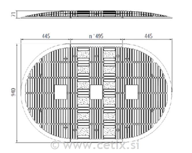 Modularna zasnova s sredinskimi in končnimi elementi omogoča lažji prehod kolesarjev in pešcev. Površina je nedrseča, montaža pa enostavna z uporabo mehanskih ali kemičnih sider (niso priložena).